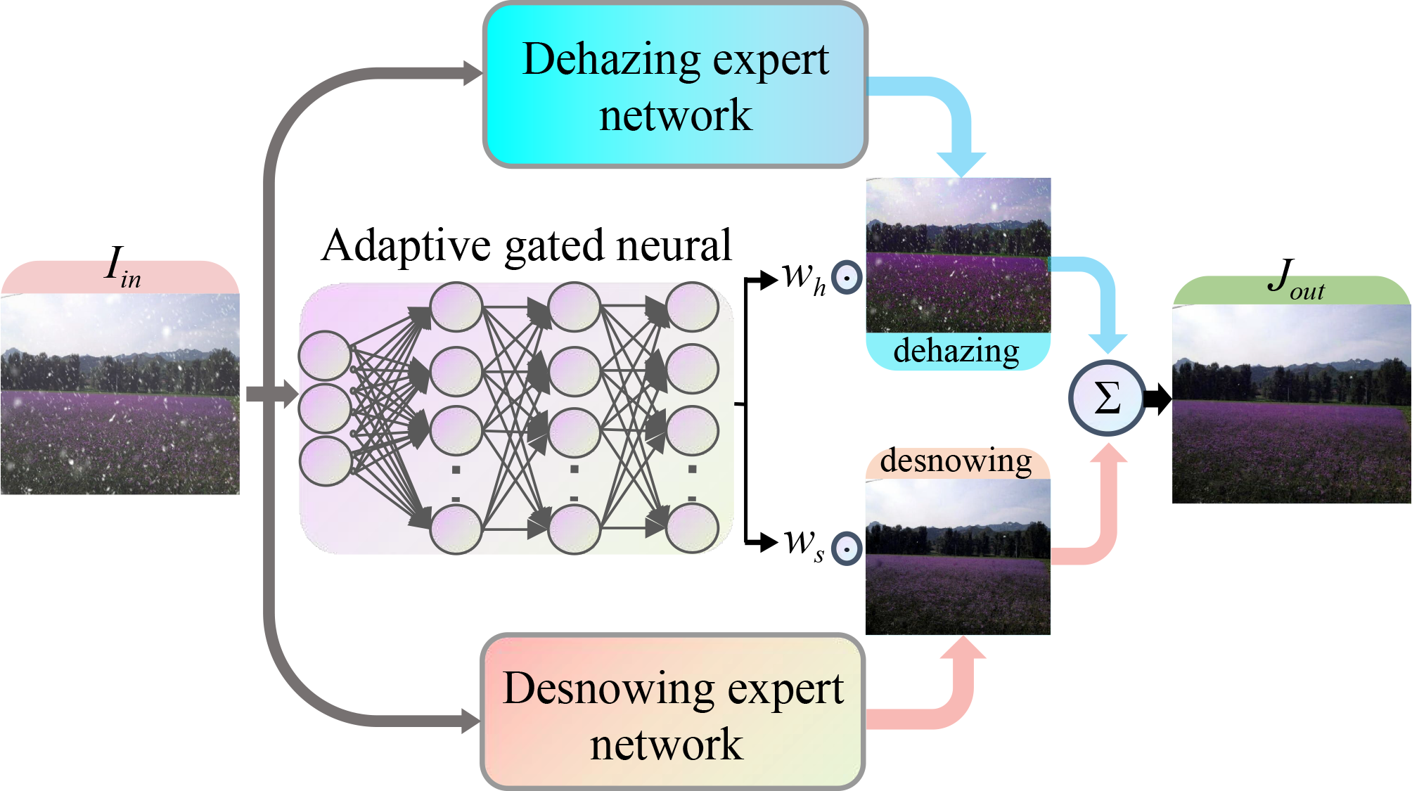- E. Chen, S. Chen, T. Ye, Yun Liu*. Degradation-Adaptive Neural Network for Jointly Single Image Dehazing and Desnowing. Frontiers of Computer Science, 2024, 18(2): 182707. (CCF-B, Corresponding author)