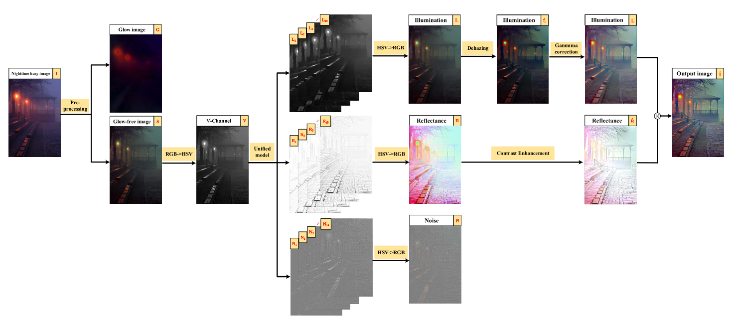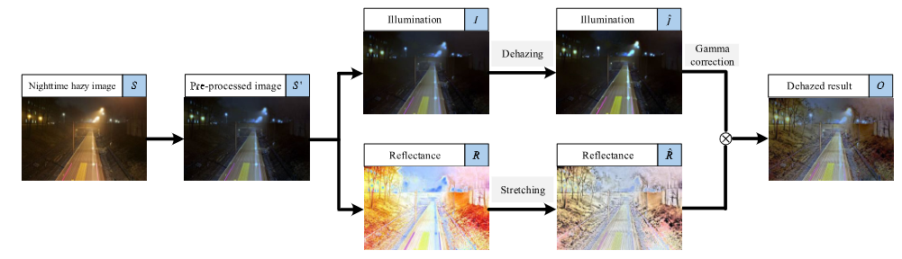 - Yun Liu, Z. Yan, J. Tan, Y. Li. Multi-purpose Oriented Single Nighttime Image Haze Removal Based on Unified Variational Retinex Model. IEEE Transactions on Circuits and Systems for Video Technology (T-CSVT), 2023, 33(4): 1643-1657. (CCF-B, ESI Highly Cited & Hot Paper)